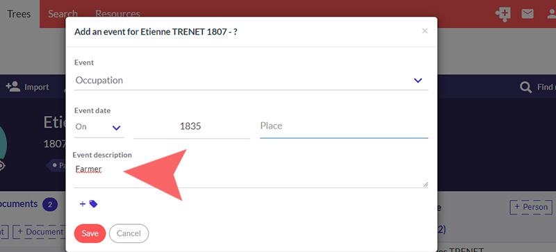 You can add one or more notes for each person in your genealogy. In the profile, in the tree, click on + Notes