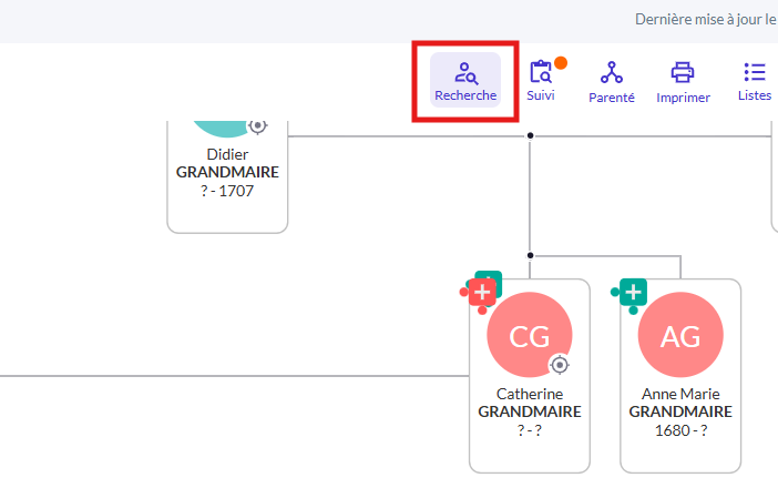 1) Utilisez la recherche dans votre arbre afin de sélectionner la personne souhaitée