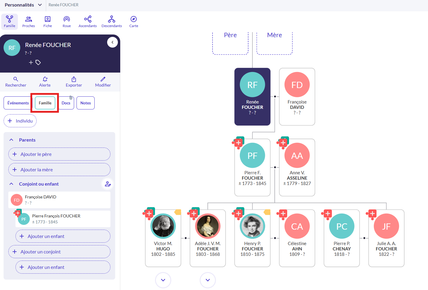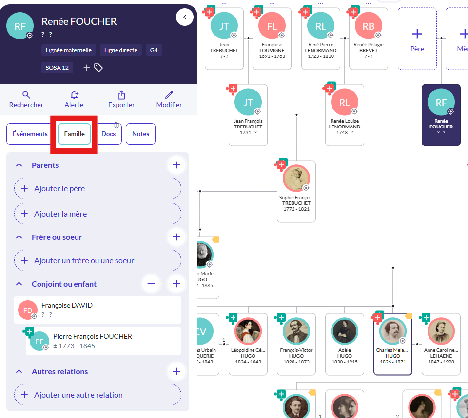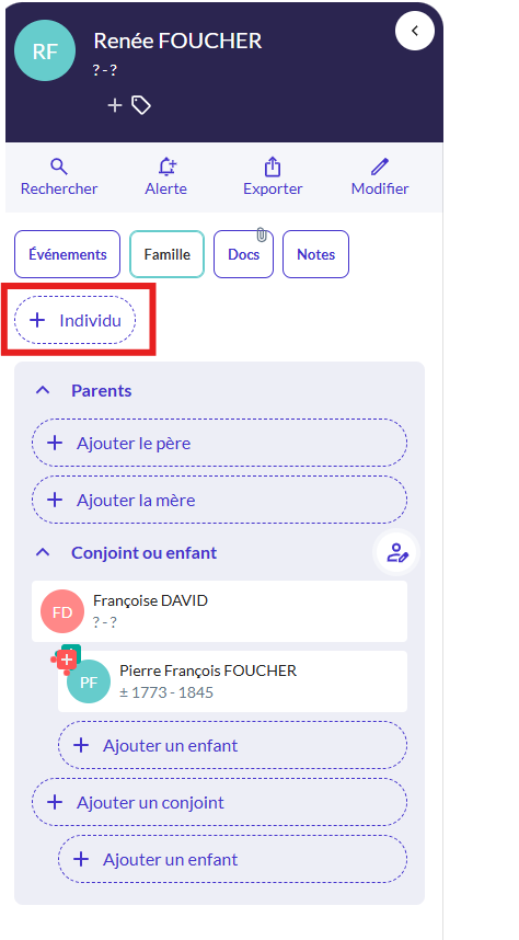 Vous souhaitez enrichir votre arbre généalogique en ajoutant des parents, conjoints, enfants, frères ou sœurs et bien d'autres individus ?