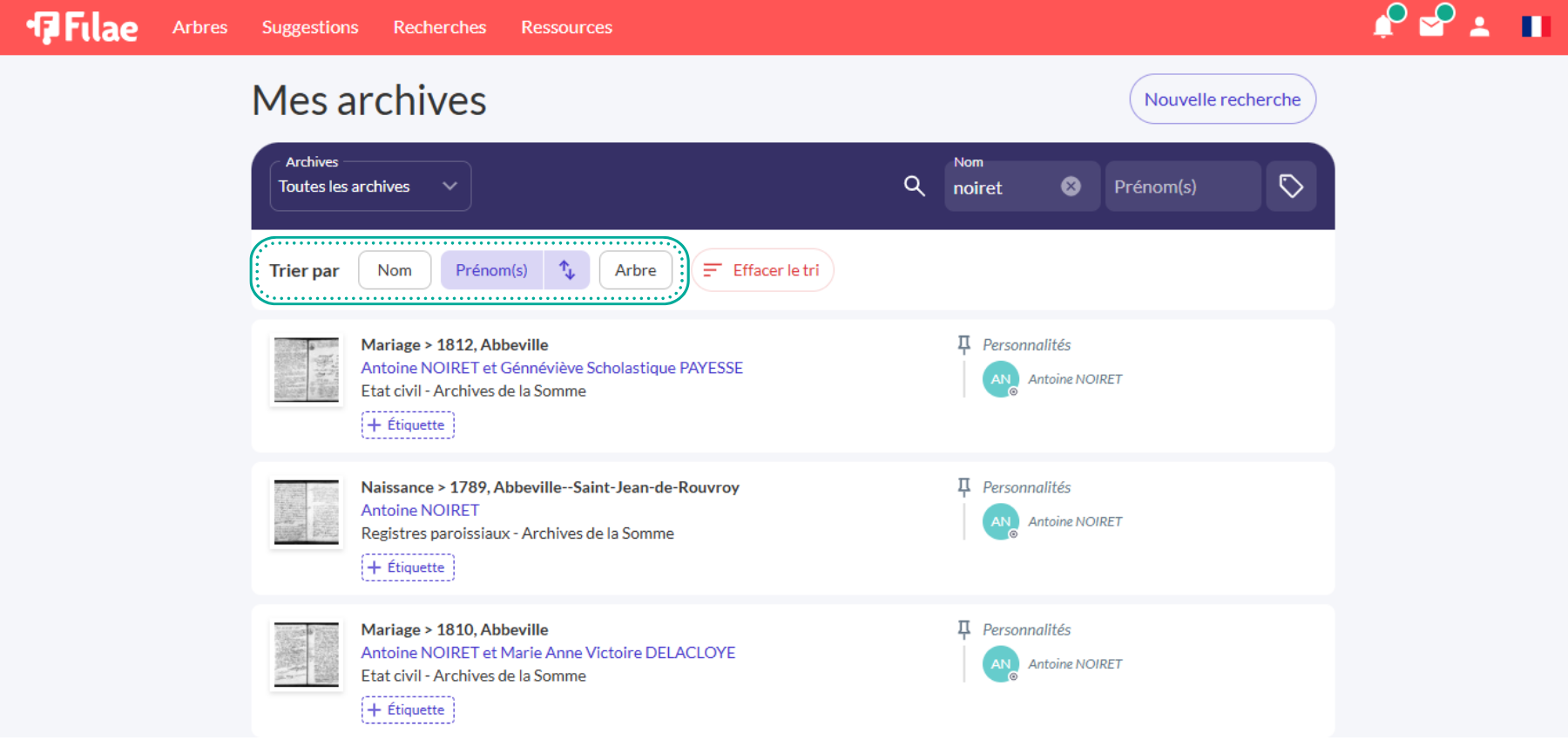 Tri sur mesure : Classez vos résultats par nom, prénom ou par arbre généalogique.