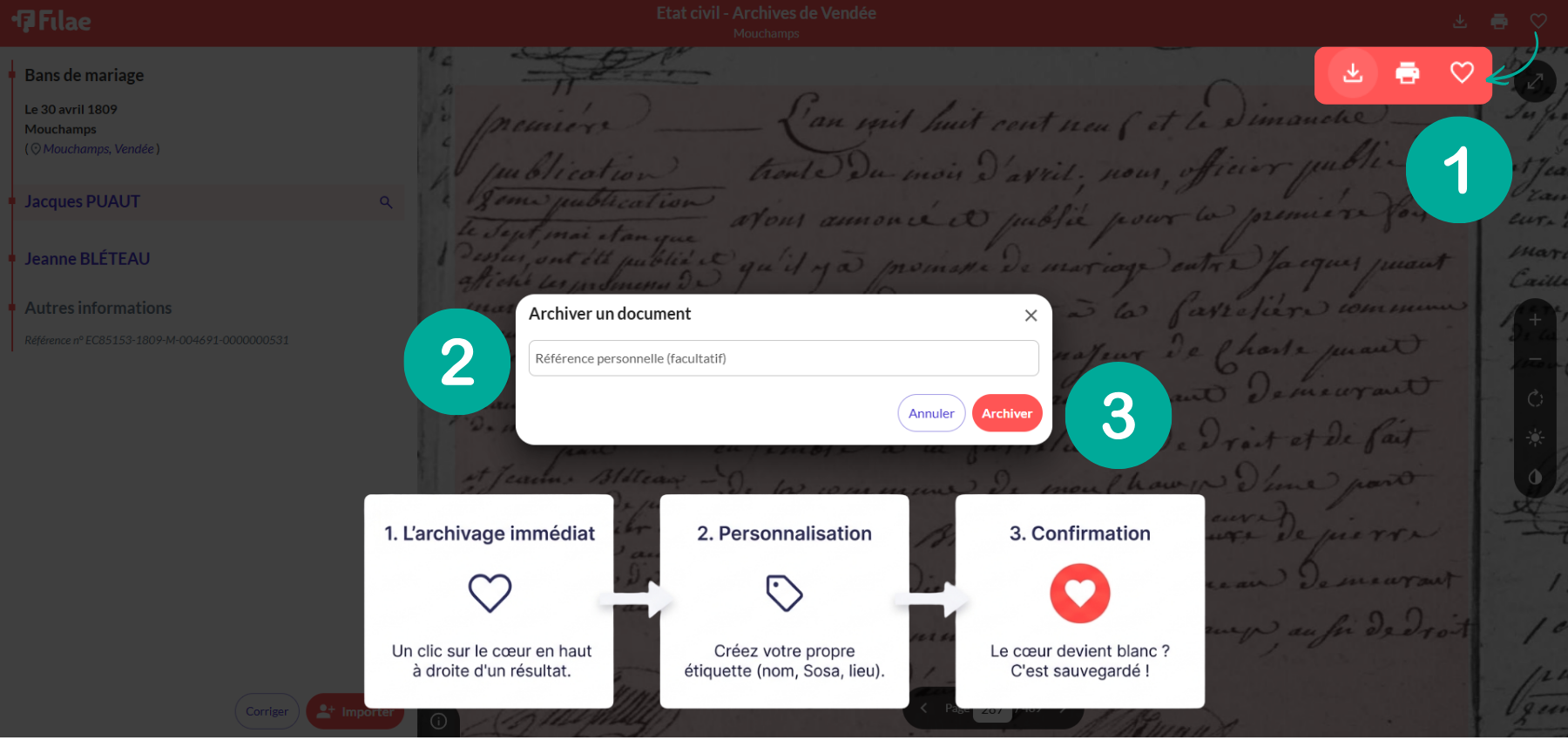 L’archivage immédiat : Un clic sur le cœur, et le document est sauvegardé dans votre compte (1).