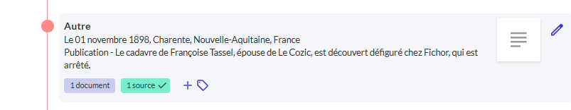 Il est important de noter les sources des informations pour chaque personne et chaque événement. Vous avez consulté une archive ? Un arbre ? Une base de données ? Un site comme Wikipédia ou Gallica ? Il est d'abord possible d'importer des ...