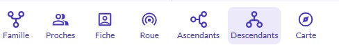 - La première permet de tout déplier ou de tout replier. Vous avez jusqu'à 4 générations descendantes dépliées automatiquement.