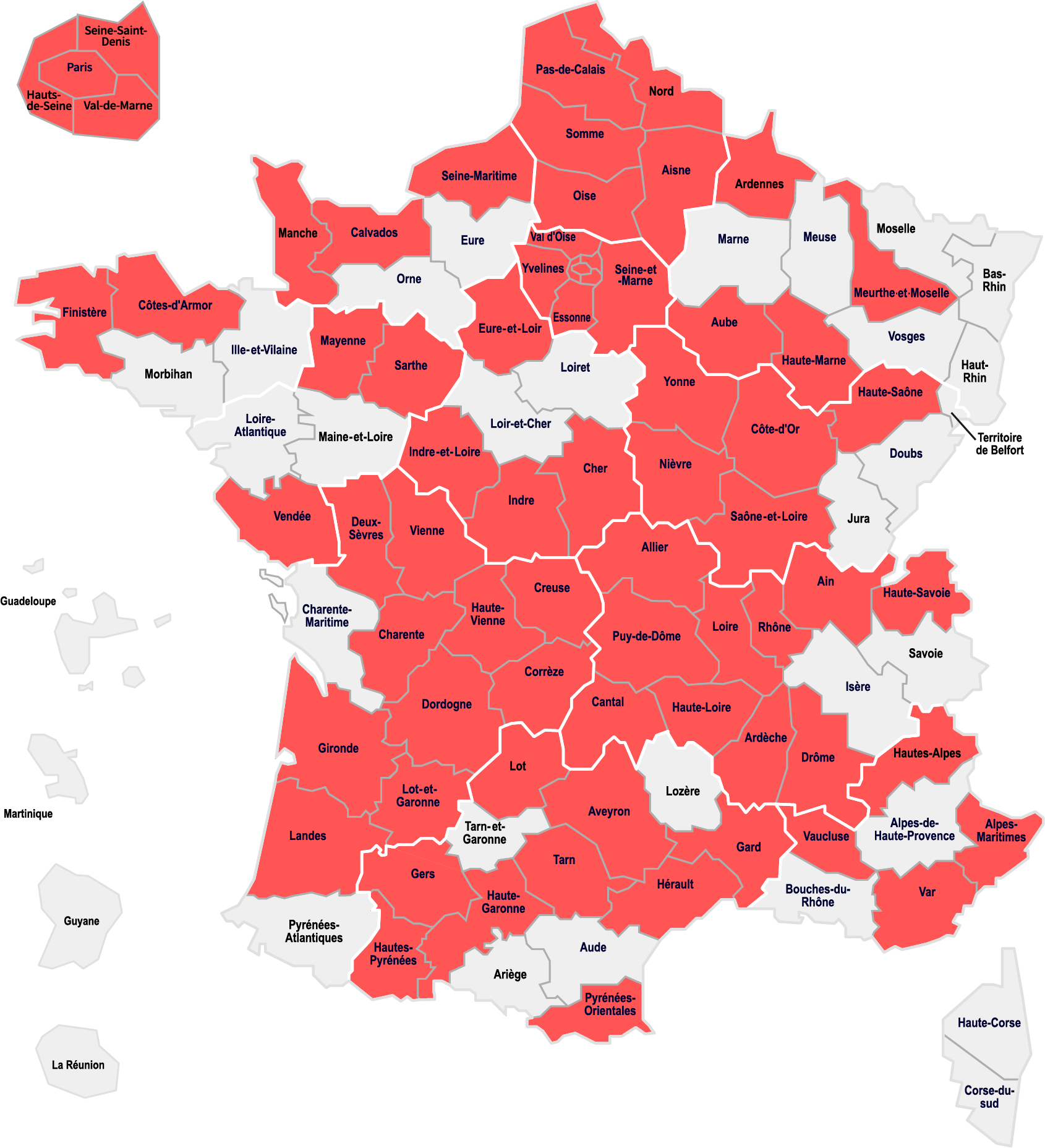 Pas de numérisation actuellement en ligne sur les sites des archives pour les départements suivants :